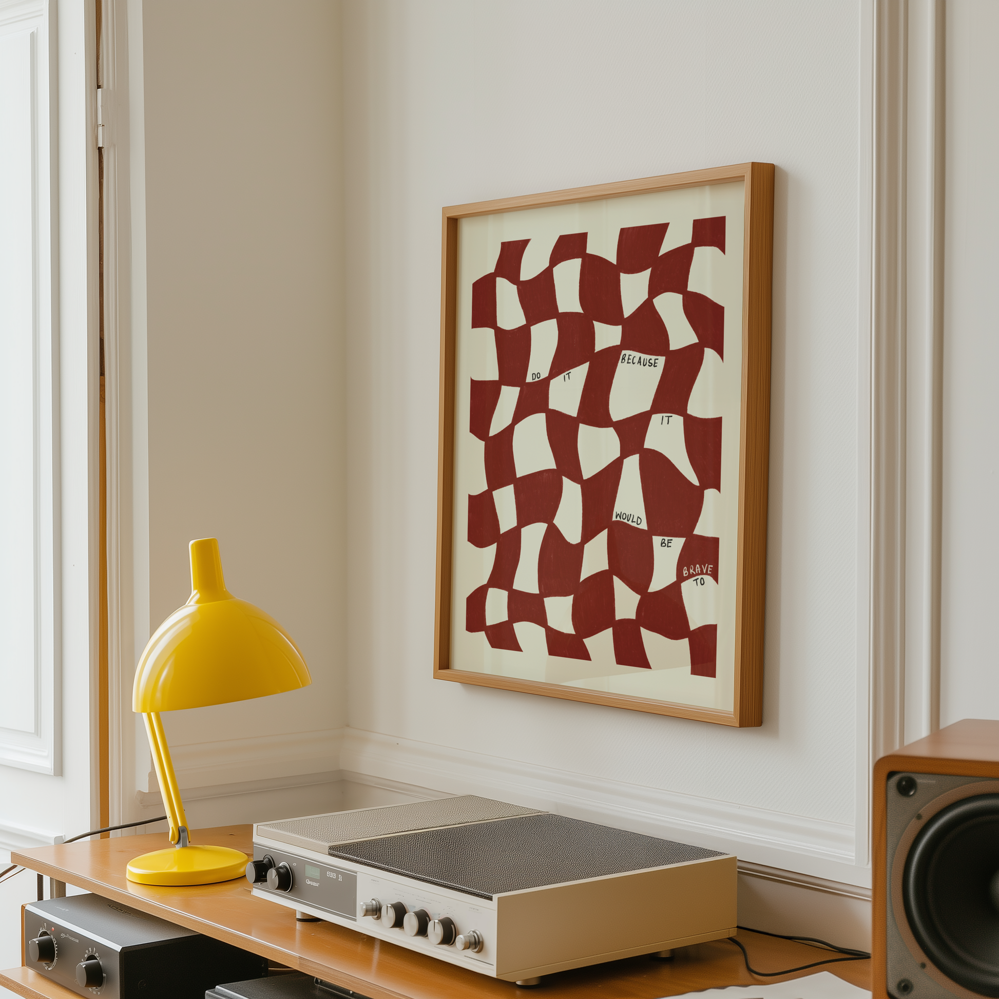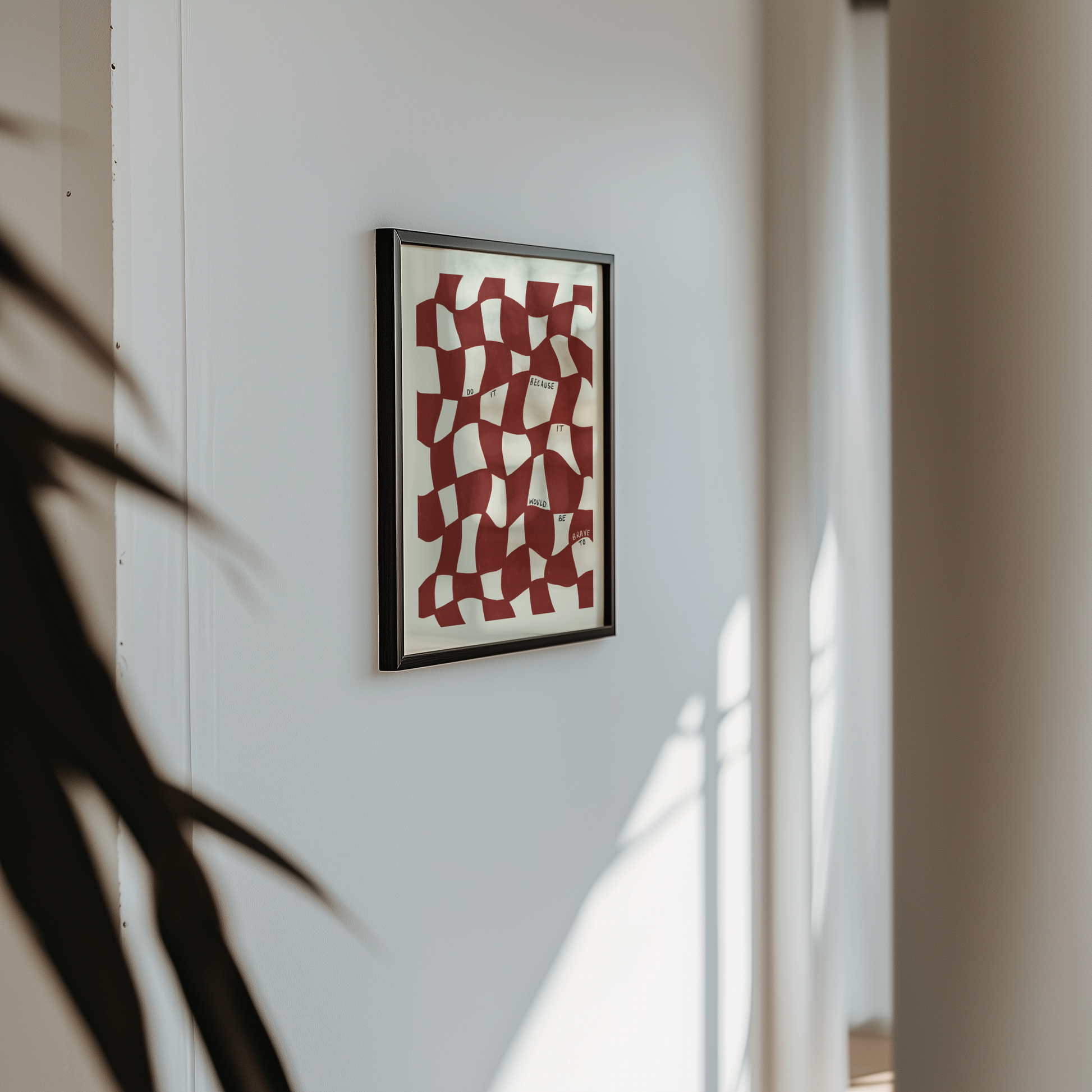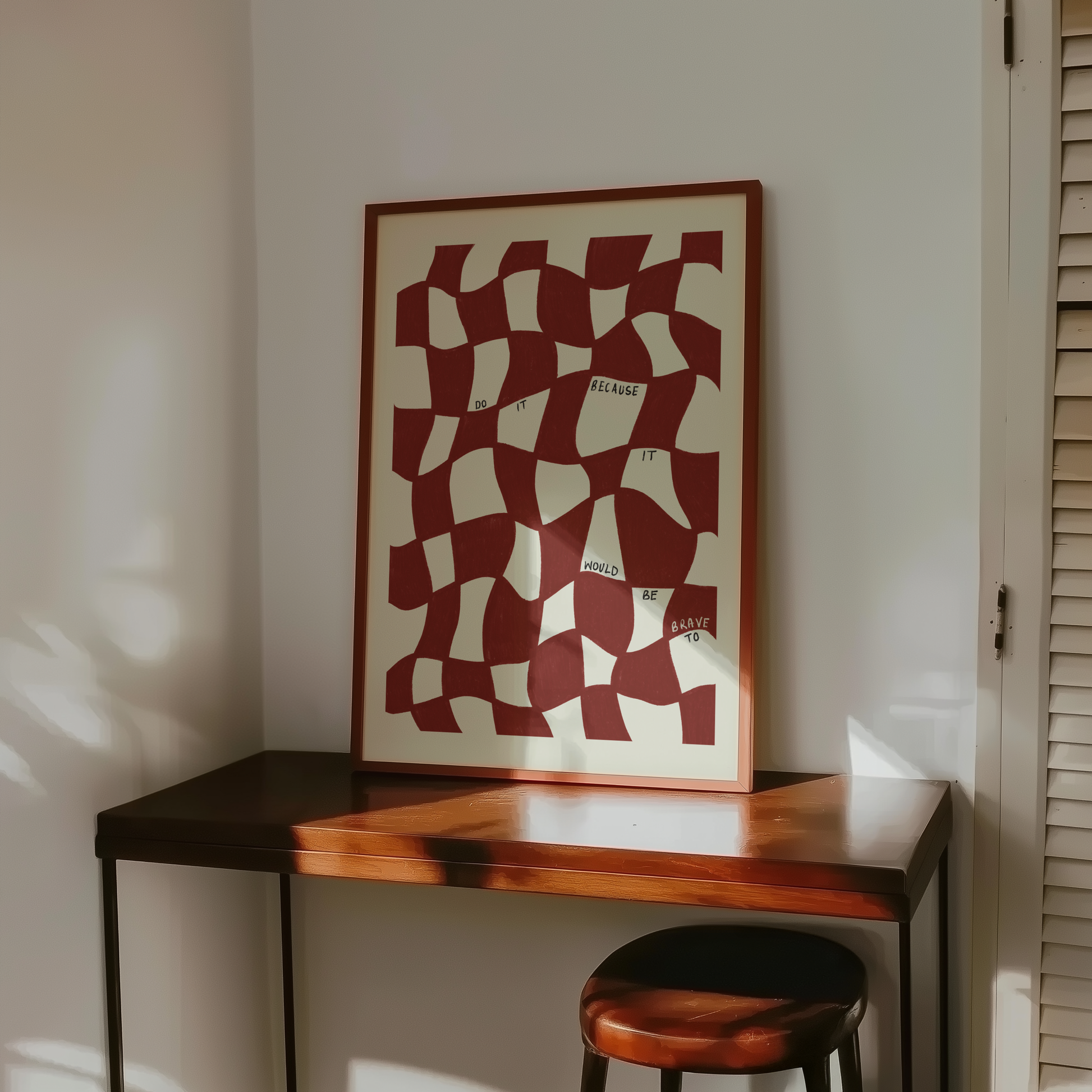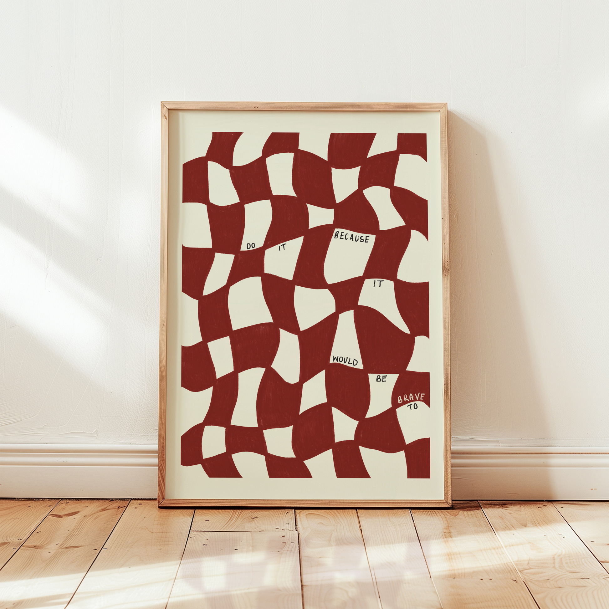 Add character to your space with this wavy checkered typography print in burgundy red and ivory. Perfect for your living room, bedroom, hallway, kitchen and definitely office! All hand-drawn and hand-written typography inspirational quotes to give you a confidence boost when you need it. Would be perfect for a gift to support a friend or family member.