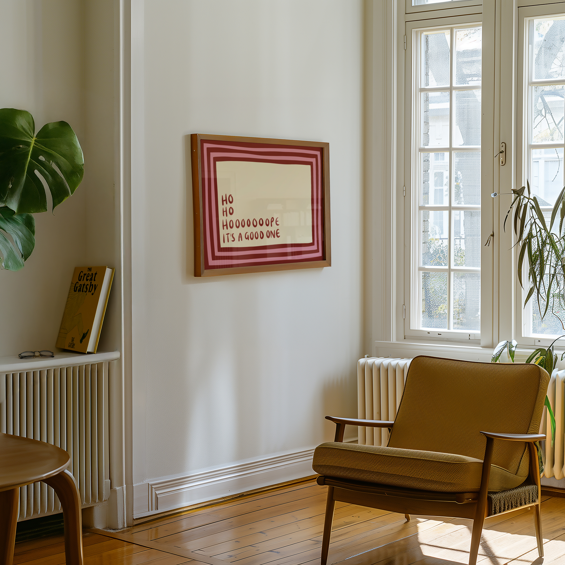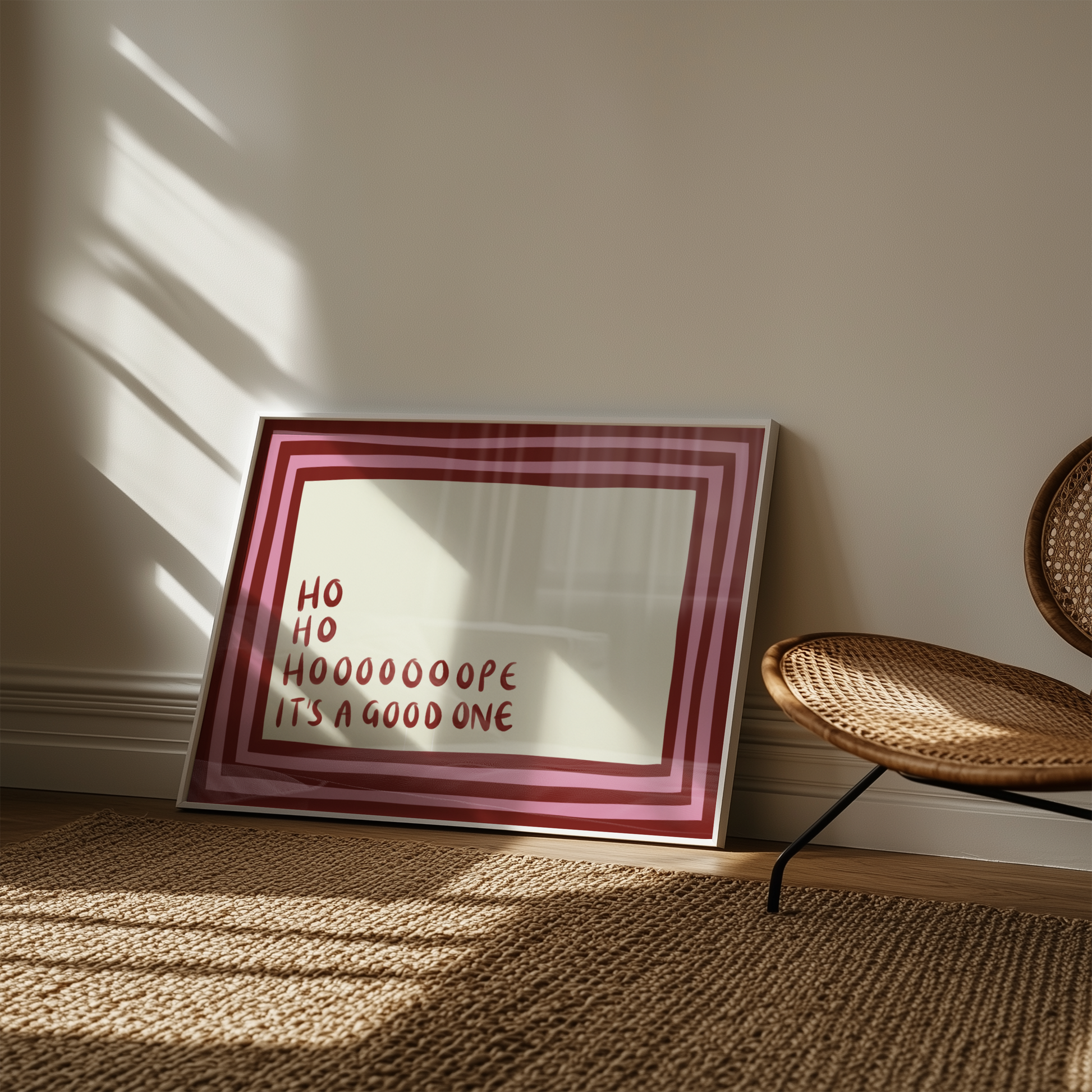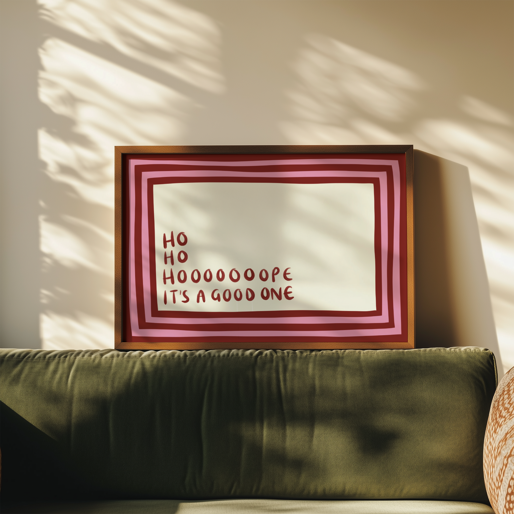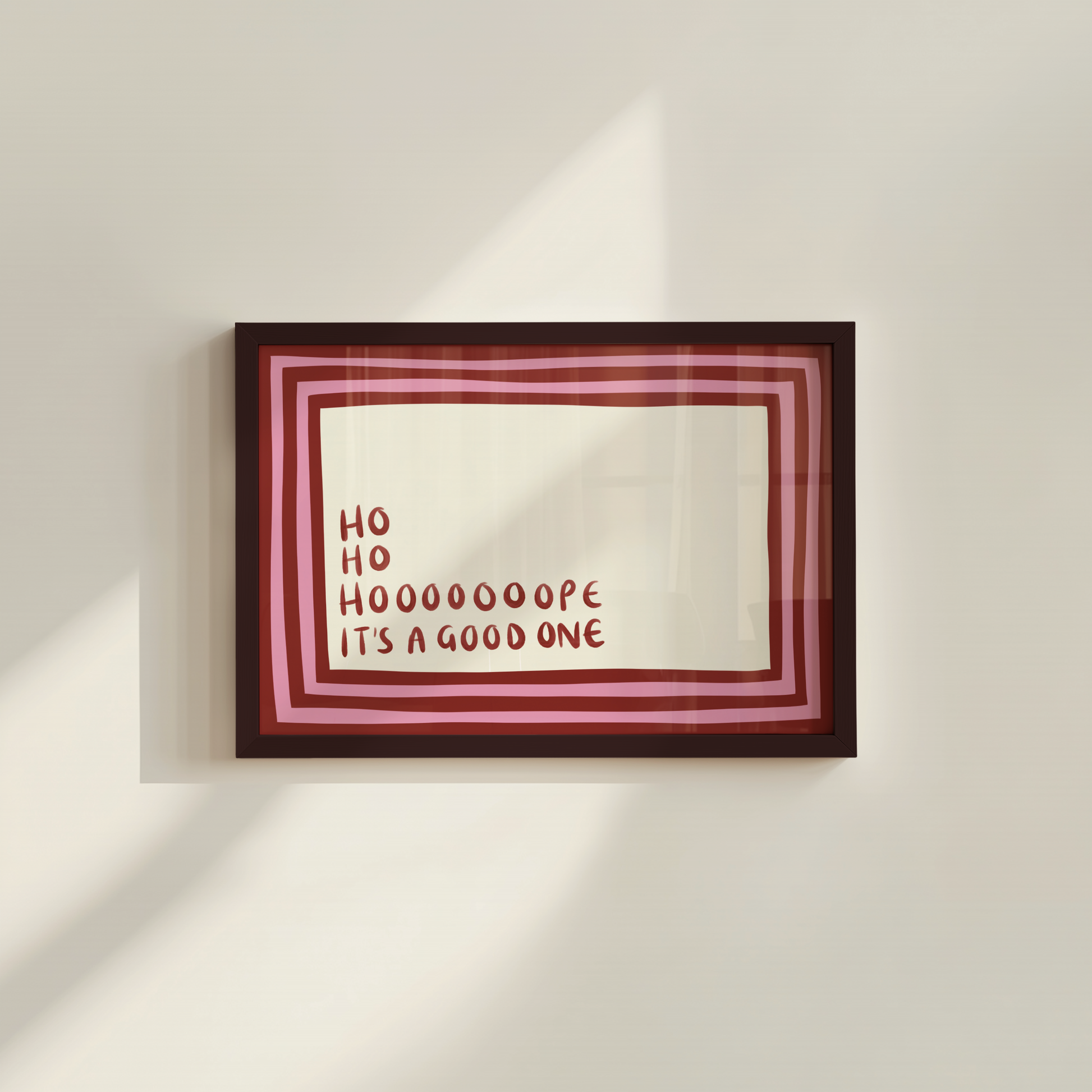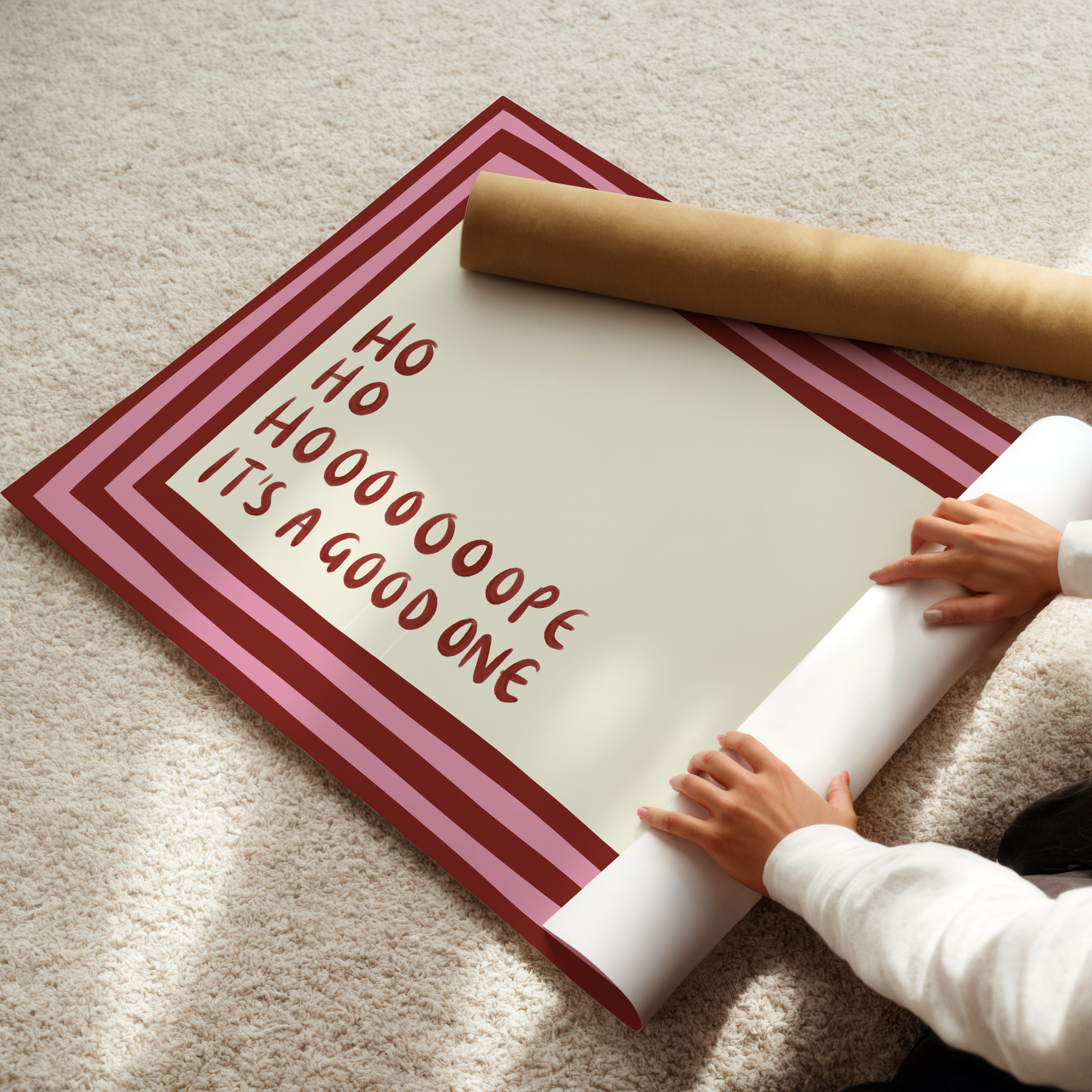 Ho Ho Hope It's a Good One Striped Border Pink and Red Print